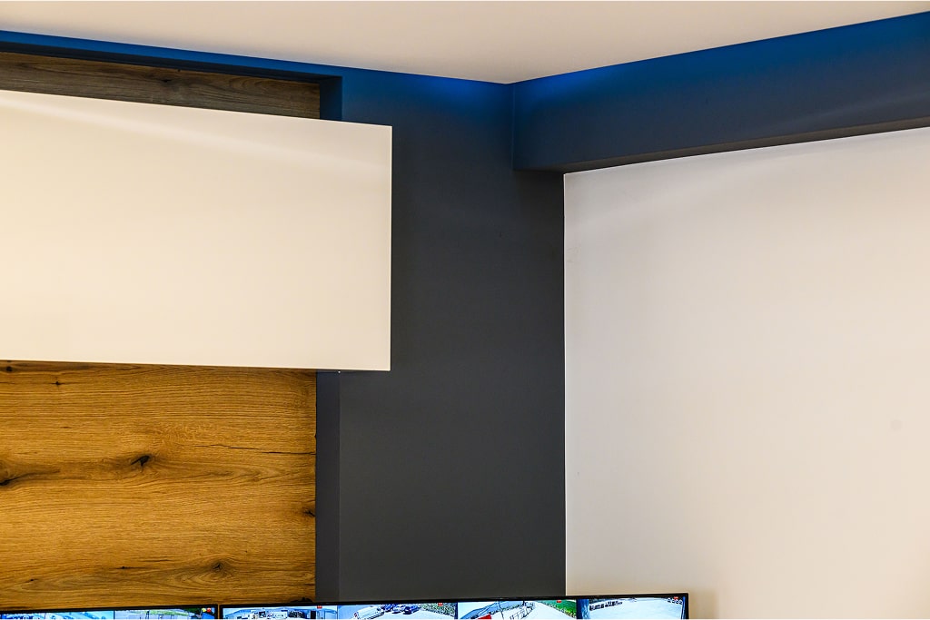 U ovom projektu enterijera, posebna pažnja posvećena je obliku plafona i rasvete, koji definišu karakter prostora. Dinamične linije LED osvetljenja u hodnicima i dnevnoj zoni stvaraju doživljaj kretanja i dubine, dok kružne forme u plafonskoj rasveti daju prostoru futuristički i ujedno topao ton.
